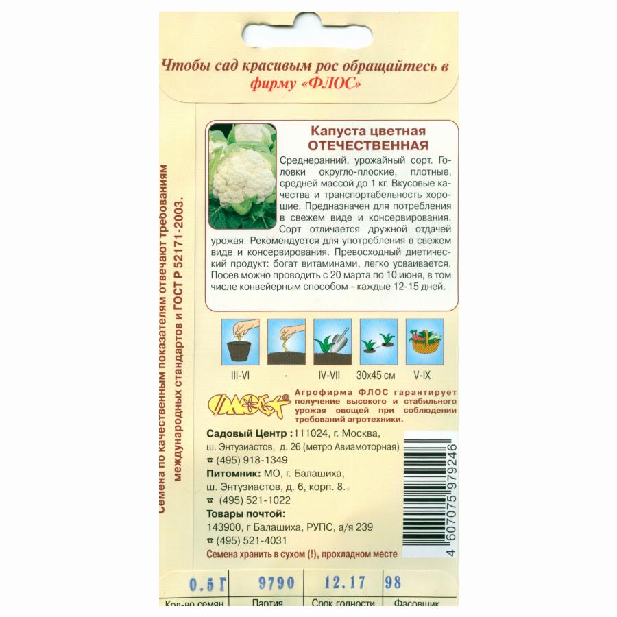 КАПУСТА ЦВЕТНАЯ ОТЕЧЕСТВЕННАЯ 0,5 Г флос