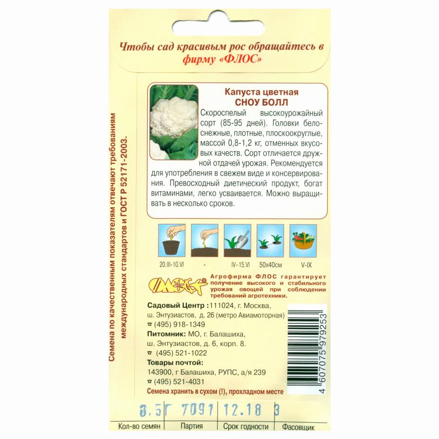 КАПУСТА ЦВЕТНАЯ СНОУБОЛЛ 0,5 Г флос