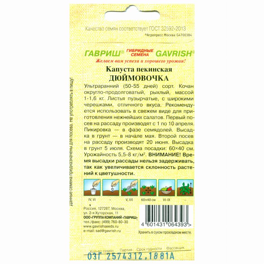 КАПУСТА ПЕКИНСКАЯ ДЮЙМОВОЧКА 0,3 Г гавриш