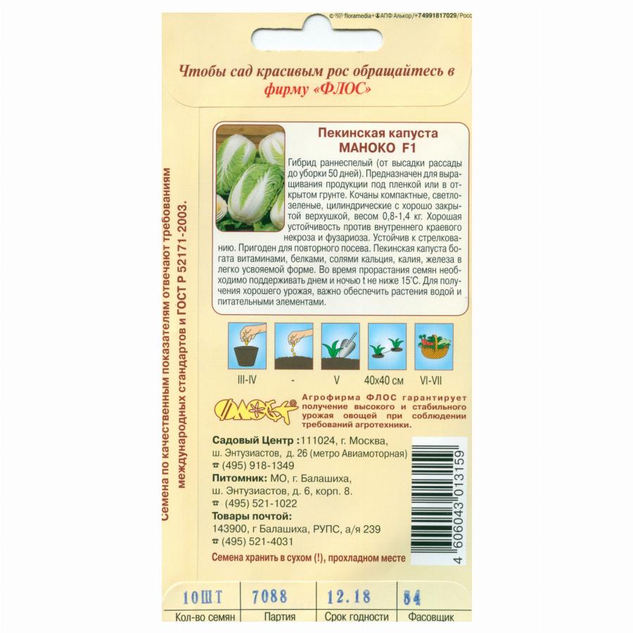 КАПУСТА ПЕКИНСКАЯ МАНОКО F1 10 ШТ флос