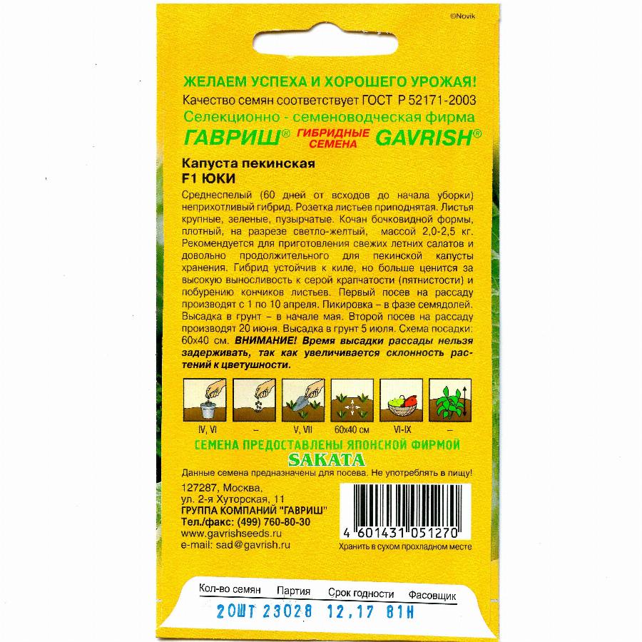 КАПУСТА ПЕКИНСКАЯ ЮКИ F1 20 ШТ гавриш