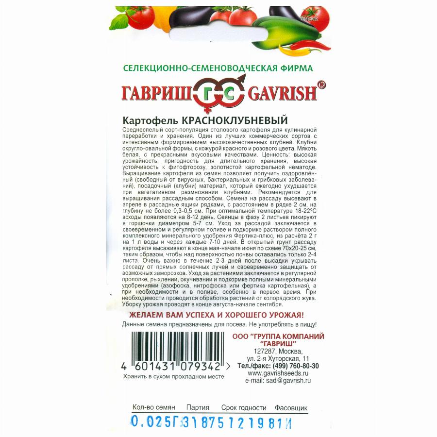 КАРТОФЕЛЬ КРАСНОКЛУБНЕВЫЙ 0,025 Г гавриш