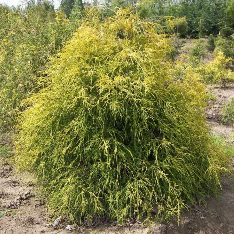 Ширококонический, относительно медленнорастущий кустарник. Ветвление нетипичное, веревкообразное, свисающее. Достигает в возрасте 10 лет 1,5м высоты. Хвоя золотисто-желтого цвета. Не требователен к почве и влажности. Светолюбив, выносит небольшую полутень. Рекомендуется для малых садов, одиночных посадок и садовых композиций. Необходимо помнить, что все части растения являются ядовитыми.