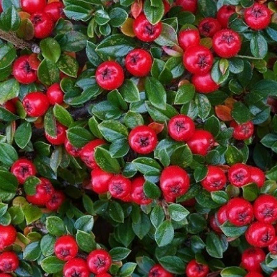 Кустарник высотой до 50 см, с вечнозелеными темными листьями. Цветение обильное, белыми цветками. Завязываются красно-оранжевые плоды, густо усыпающие кустарник до самой зимы и придающие ему декоративность. Требования к условиям окружающей среды как у прочих видов. Хорош в виде контейнерного растения. Образует живописные покрытия на газонах, около стен, на альпийских горках.