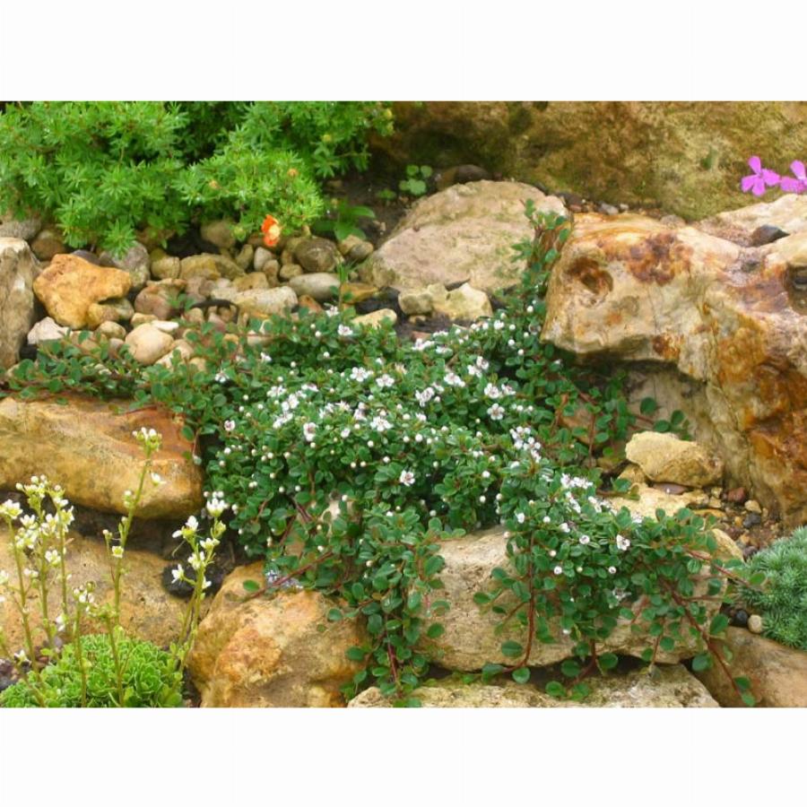 Быстрорастущий вьющийся кизильник, вырастающий до 60-80 см – частично вьющееся растение с расположенными по кругу ветвями, вечнозеленые листья достигают 1-2 см в длину. Прекрасно подходит для ковровых посадок. Цветы розовато-красные, ягоды ярко-красные, декоративные.