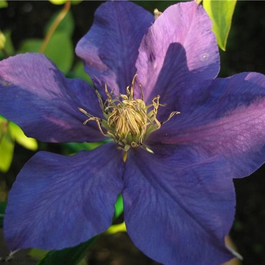 3 группа обрезки, цветет на побегах текущего года. Лиана высотой 2,5-3 м. Большие сине-голубые, с темно-розовыми прожилками в середине лепестка цветки диаметром 12-15 см. Со временем слегка светлеют. Тычинки золотистые на кремово-зеленых нитях. Цветение с июля по сентябрь. Морозостоек.