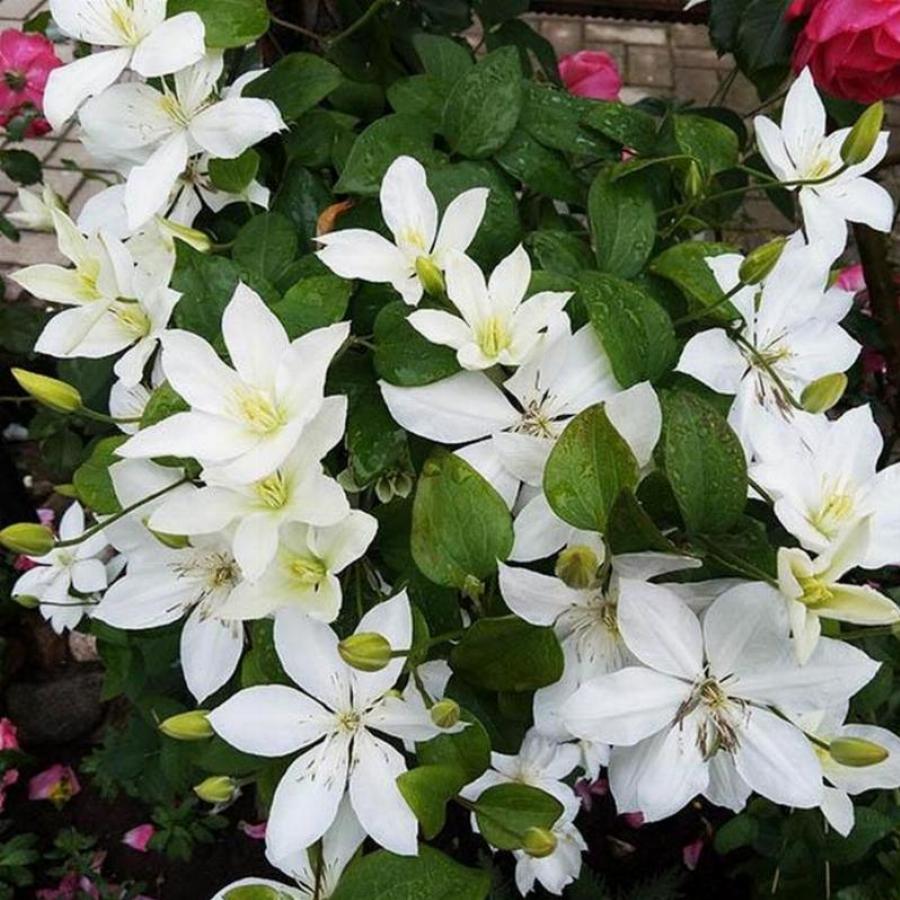 2 группа обрезки, цветет на побегах прошлого и текущего года. Белоснежные махровые цветки. Цветение обильное. Цветет в мае-июне, августе-сентябре. Высота 2-3 метра. Диаметр цветка 14-18 см. Зона зимостойкости: 4 (-35 ° С).