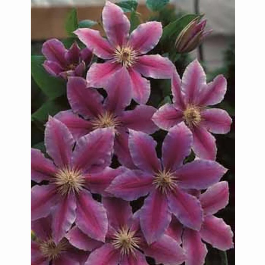 2 группа обрезки, цветет на побегах прошлого и текущего года. Растение высотой 2,5-3 метра. Цветки крупные, диаметром около 15 — 20см, чашелистики розовые с яркой пурпурной полосой по середине. Тычиночные нити белые, пыльники кремово-бежевые.