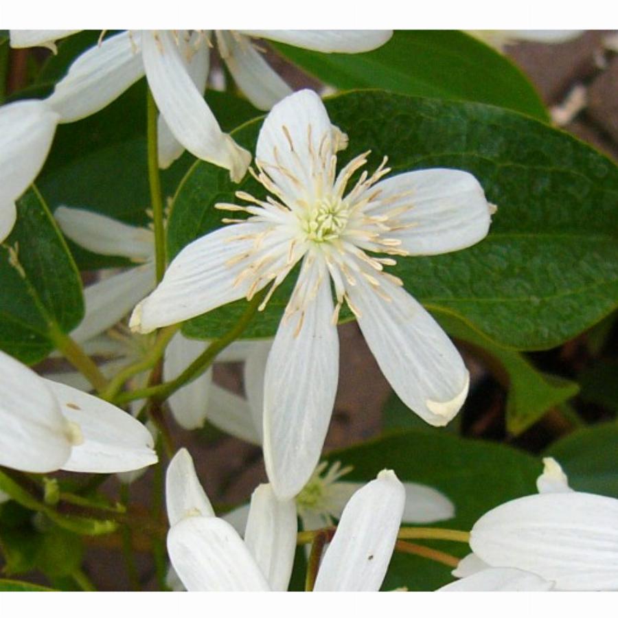 Клематис группы Арманди с изящными белыми цветками, 4-5 метров высотой.Группа обрезки 1.