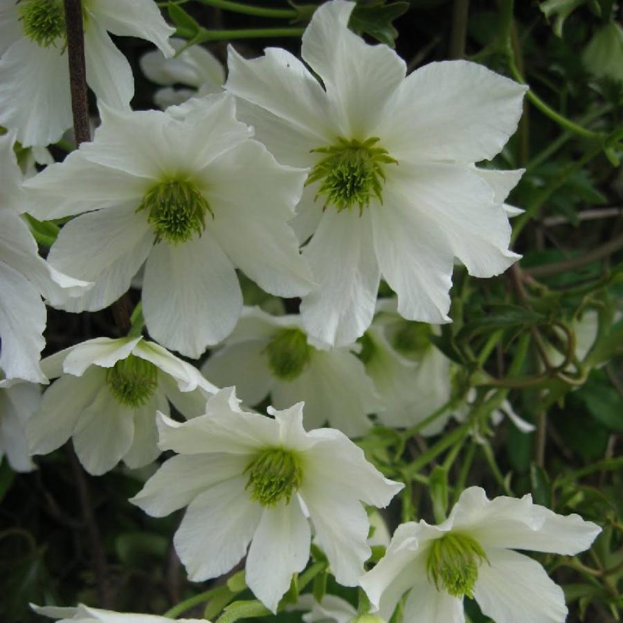 1 группа обрезки, цветет на побегах прошлого года. (Early sensation) Белоснежные лепестки вкупе с яркими, разделяющими полосками, хорошо смотрятся и на светлом, и на темном фоне. Здоровый и нетребовательный сорт. Высота: 2-3 м, размер цветка: 5-7 см. Цветение; июнь-июль.