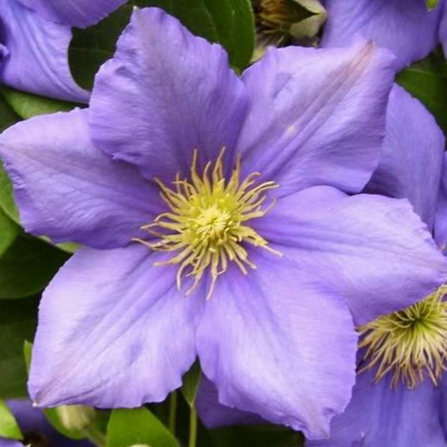 2 группа обрезки, цветет на побегах прошлого и текущего года. Длина побегов 2-3 м. листья кожистые, темно-зеленые. Цветки большие, диаметром 15-20 см. Чашелистиков 6-8, широкие, заходят друг за друга, лилово-голубые. Пыльники желтые. Цветение обильное – июнь, июль, август, сентябрь.