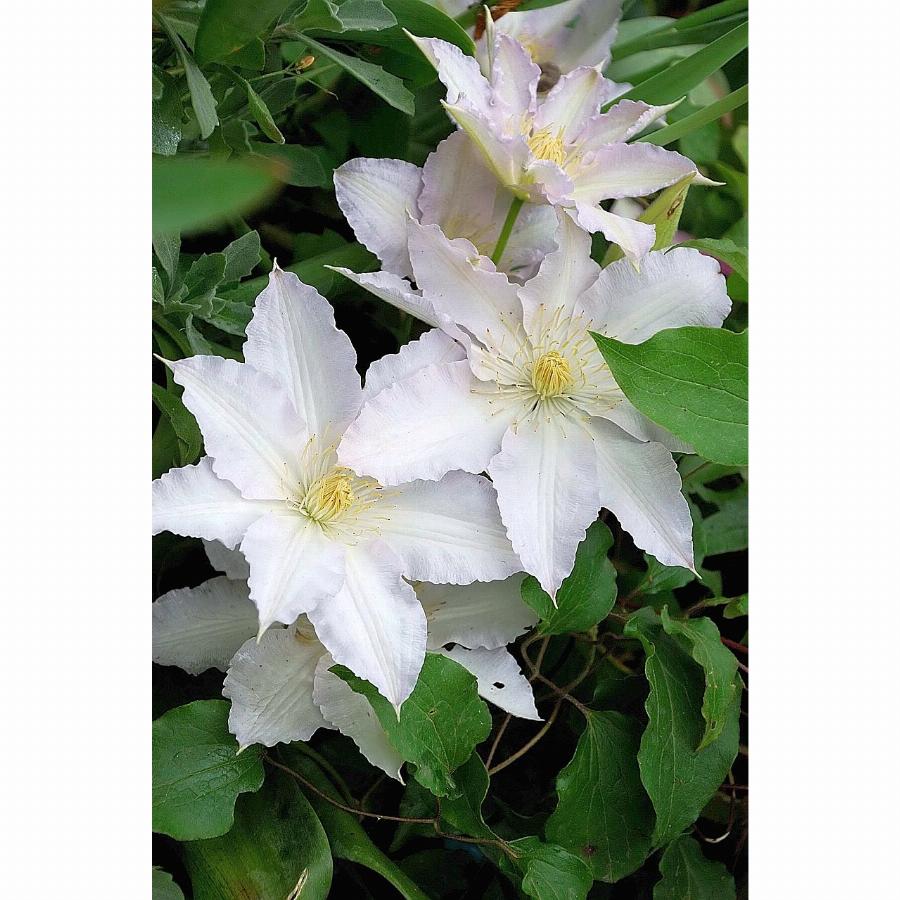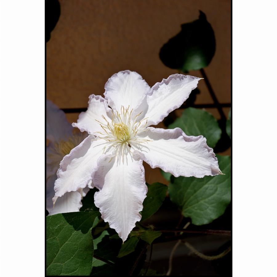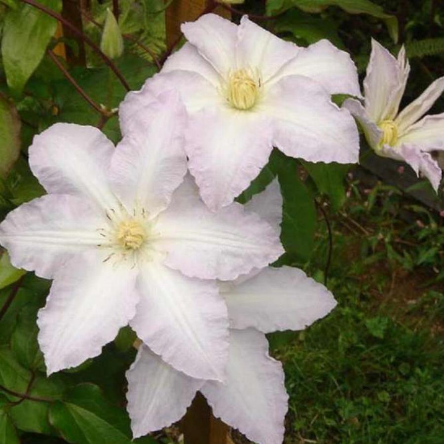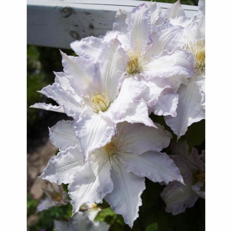2 группа обрезки, цветет на побегах прошлого и текущего года. Цветок крупного размера, диаметр цветка — 20 см, с большими волнистыми по краю лепестками лилового цвета с белой полосой в центре и кремово-желтыми тычинками. Длина растения 2,0-4,0 м. Обильно цветет в мае-июне и повторно в сентябре.