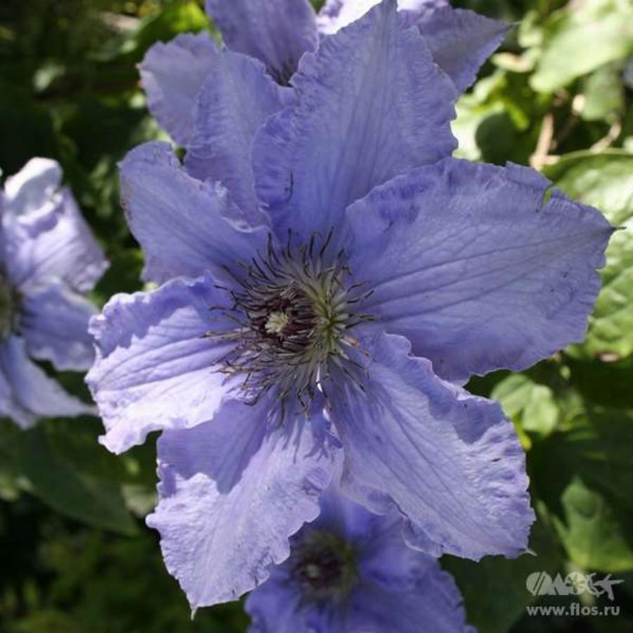 3 группа обрезки, цветет на побегах текущего года. (Blue Angel) Растение высотой 2-3 метра. Диаметр цветка 8-12 см. Чашелистики чисто-небесно-голубого цвета с волнистыми краями, пыльники светло-желтые.Цветение обильное и продолжительное. Цветет с июля до заморозков.