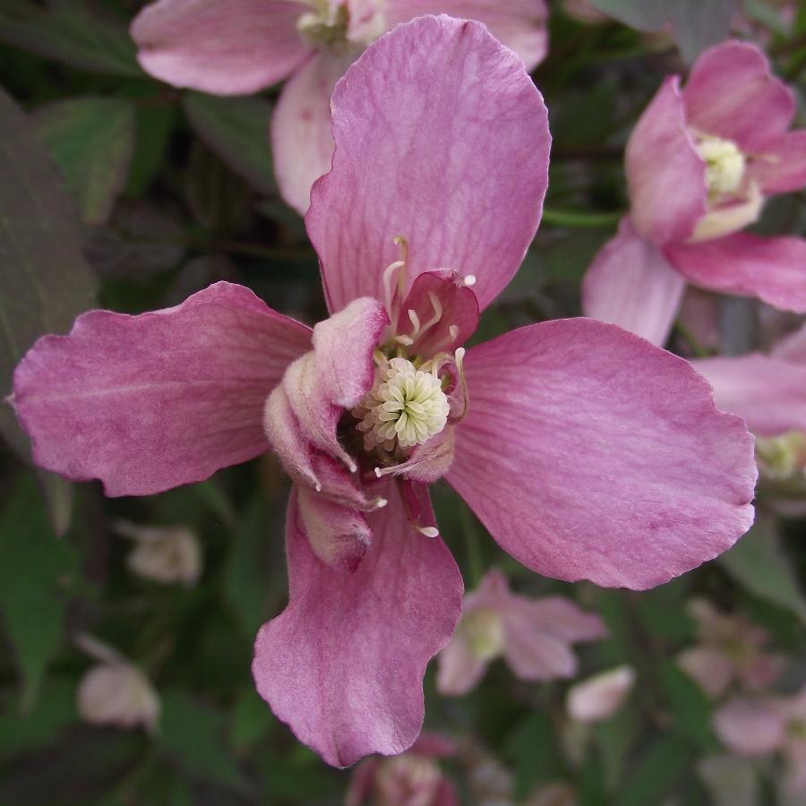 Кустарниковая лиана длиной до 5 м. Цветки раскрытые, средних размеров, до 5 см в диаметре, иногда с тонким запахом, собраны в пучки по 1— 6 цветков (в пазухах листьев). Чашелистиков 4, они белые или розовато-белые. Пыльники желтоватые. Очень обильно цветет в мае—июне только на перезимовавших побегах. Поэтому их под зиму не обрезают. Размножается семенами, черенками, отводками.