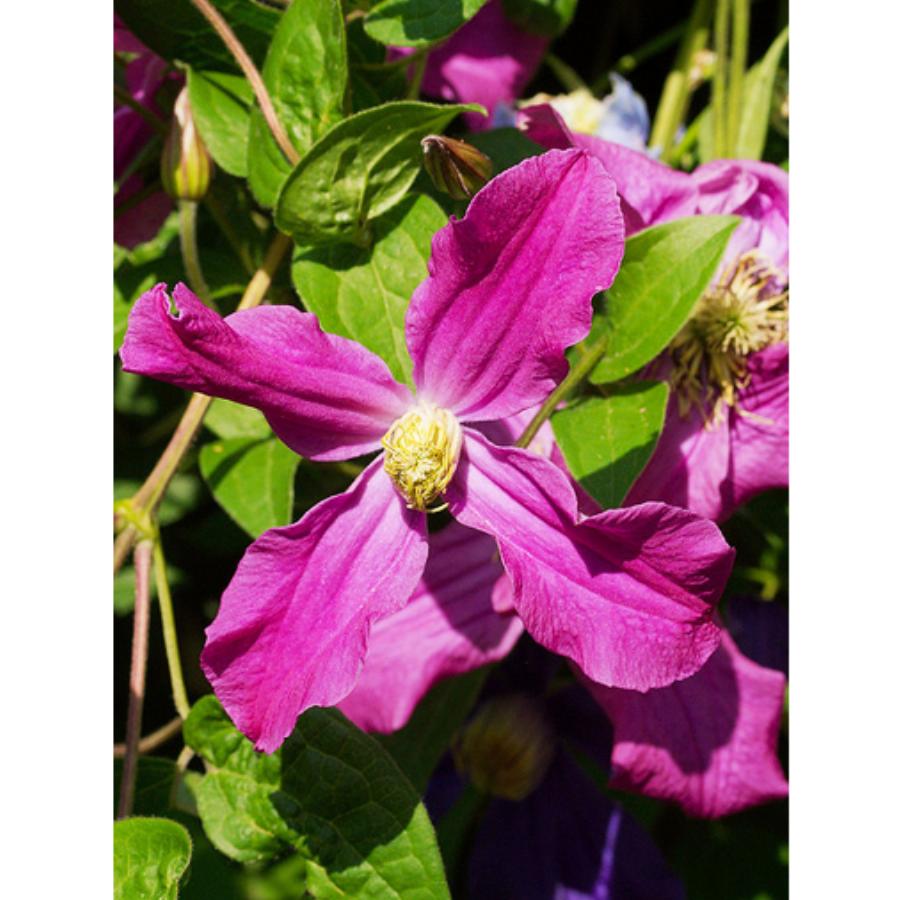 3 группа обрезки, цветет на побегах текущего года. Густо-розовый клематис достигает 1,7 м. Цветки (d 6-8 см) красивой формы, с нарядными желтыми пыльниками смотрят вверх или горизонтально. Листья темно-зеленые с чуть пурпурным отливом. Цветение длится с конца июня до начала сентября. Сорт хорошо стоит в срезке.