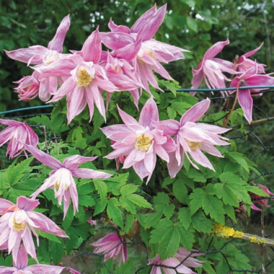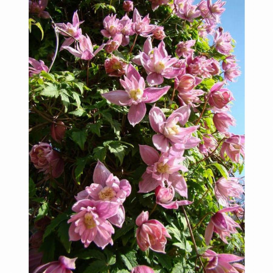 3 группа обрезки, цветет на побегах прошлого года. Княжик.Один из ранних и обильноцветущих сортов с красивыми полумахровыми пурпурно-розовыми цветками. Цветёт с апреля по июнь. Летом и осенью имеет декоративные соплодия. Высота 2-3 м. Очень устойчив и малотребователен к условиям выращивания. Не требует обрезки, если не мешает соседним растениям.