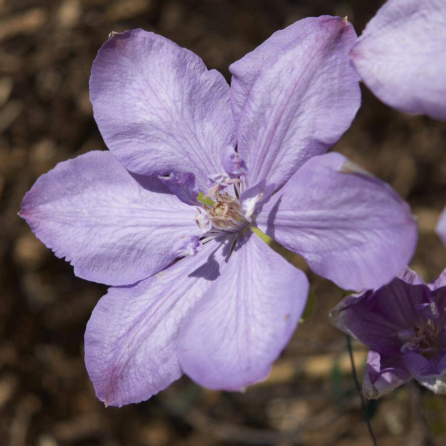 2 группа обрезки, цветет на побегах прошлого и текущего года. Группа Флорида. Лиана длиной 2-2,5 метра, цветки раскрытые, 15-18 см в диаметре, на прошлогодних побегах полумахровые. Чашелистиков 6-8, они заостренно-эллиптические, интенсивно-лавандово-голубые, светлеют. Пыльники светло-коричневые. Цветет обильное в мае-июне, августе-сентябре.