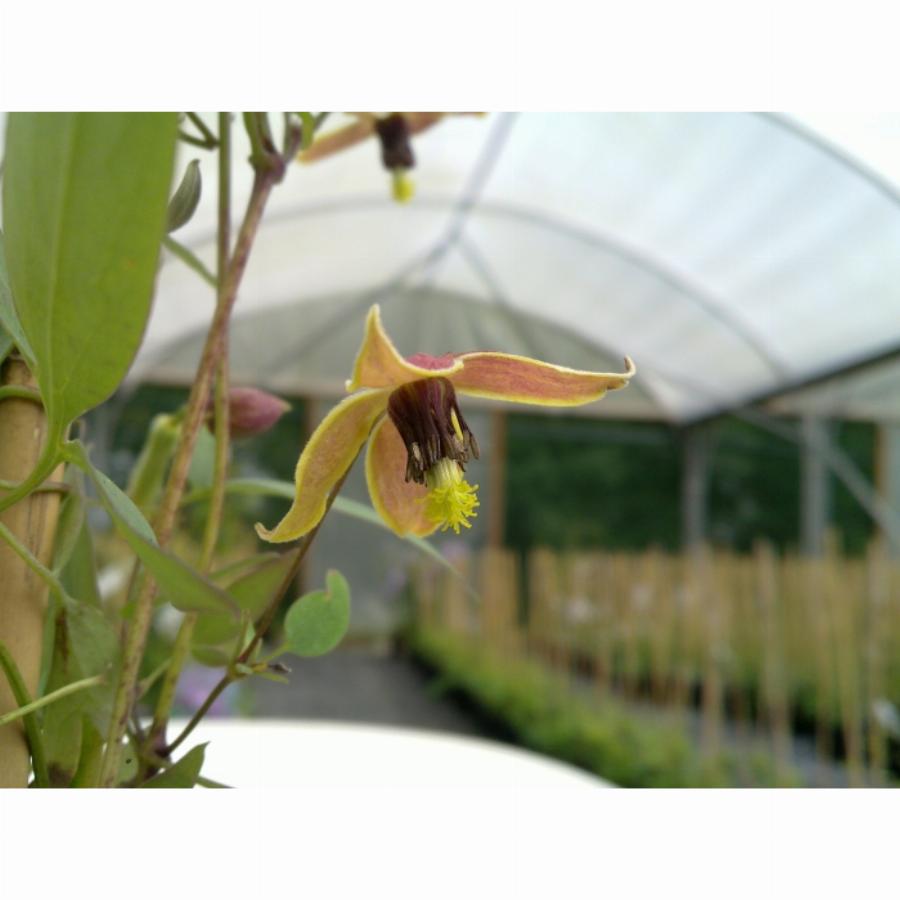 Лиана высотой до 3 м. Листья сизоватые. Цветки мелкие, красно-коричневые снаружи и желтые внутри. Цветет обильно с июля до заморозков. Здоровая, плотная листва. Сорт неприхотлив. Не требует обрезки!