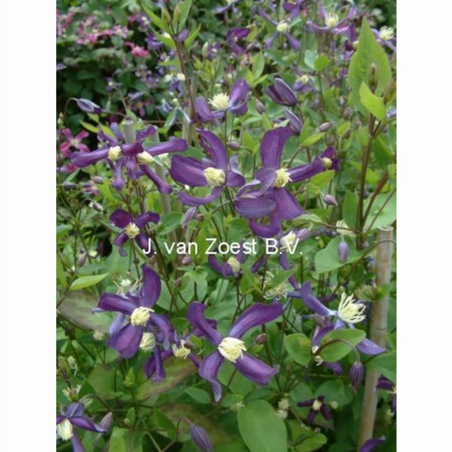 2 группа обрезки, цветет на побегах прошлого или текущего года. Обильноцветущий, стойкий сорт с фиолетово-синими махровыми или полумахровыми цветками и пушистыми тычинками. Цветки имеют разнообразную форму. Цветет с мая по сентябрь с перерывом в июле, вначале на перезимовавших побегах, потом на побегах текущего года. Высота 2,5-3 м. Цветки 8-13 см.