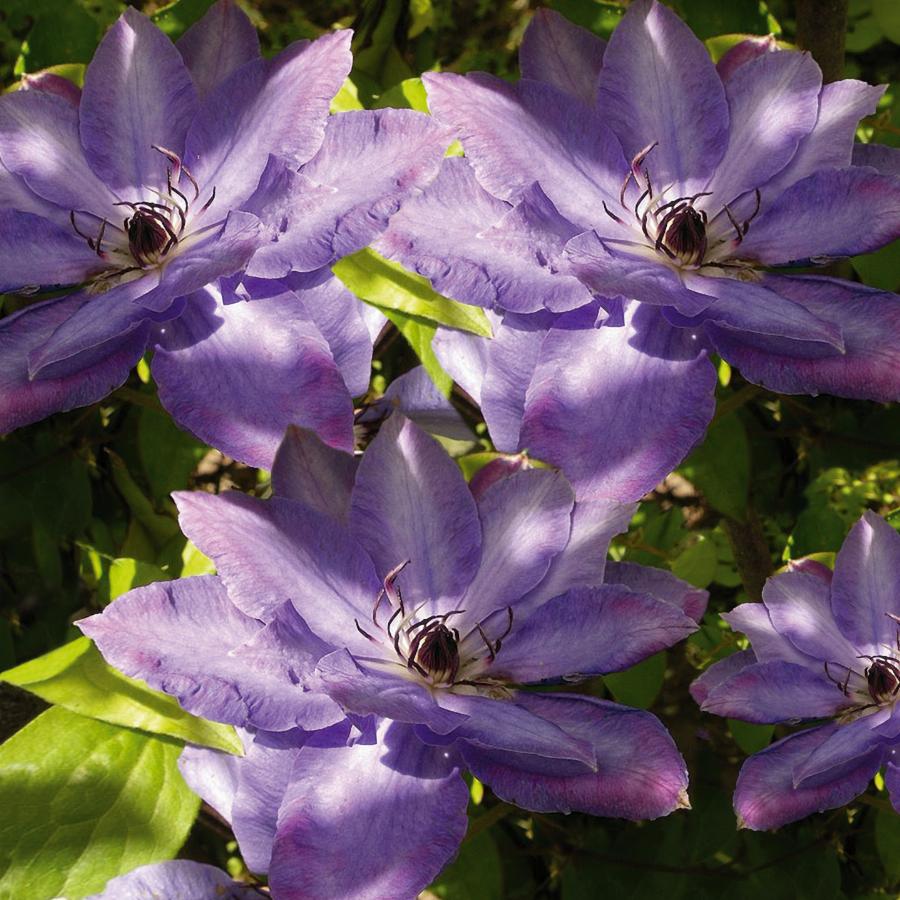 2 группа обрезки, цветет на побегах прошлого и текущего года. Лиана до 2,5-3 метра длиной. Большие фиолетово-синие цветы с более бледной синей штриховкой по центру лепестков. Края лепестков широкие, волнистые. Красноватые-фиолетовые пыльники. Ранне цветущий сорт. Цветет в мае-июне на побегах прошлого года и повторно в августе.