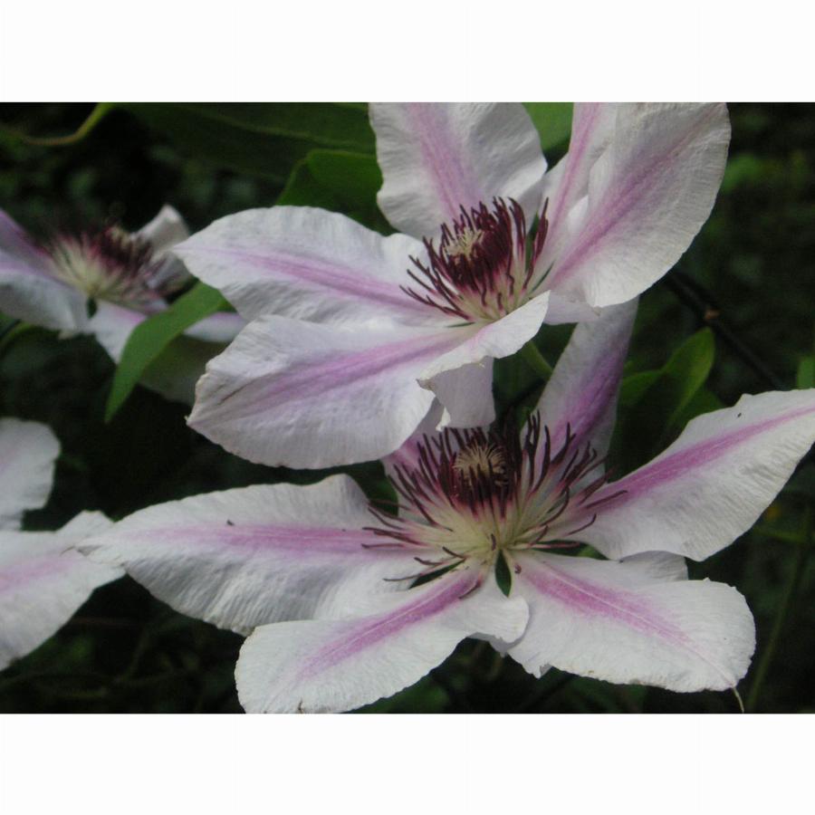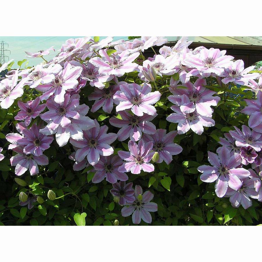 2 группа обрезки, цветет на побегах поршлого и текущего года. Кустарниковая лиана длиной 2,5-3,5 м. Цветки раскрытые, направленные вверх, звездообразные, 16-20 см в диаметре. Чашелистиков 6-8, они светло-голубовато-розовые с красно-малиновой полосой по центру, сильно выгорают. Пыльники красновато-пурпурные. Цветет в мае-июне, затем до холодов.