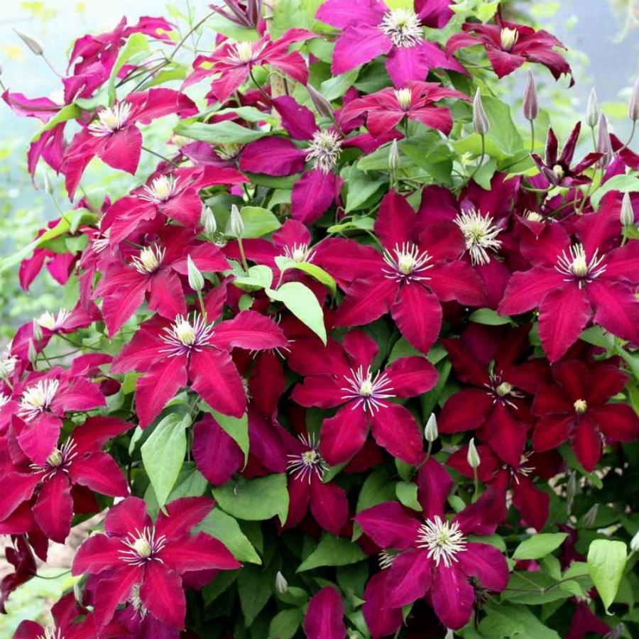 3 группа обрезки, цветет на побегах текущео года. Цветок крупный (12-15 см) темно-красного цвета с желтыми пыльниками. длина растения 2,0 м, зимостойкий. Цветет в июне-сентябре.