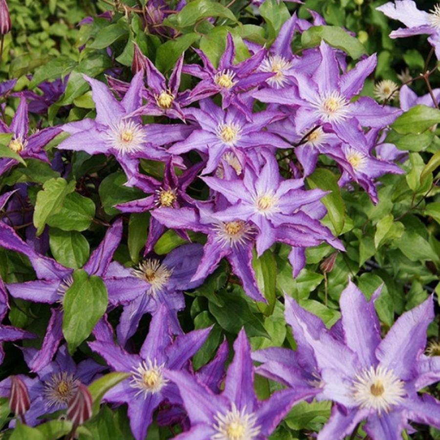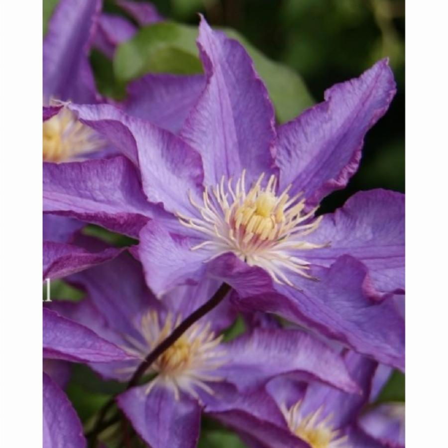 2 группа обрезки. Высота растения 1,5- 2м. С большими, ярко-пурпурно-фиолетовыми цветками с заостренными лепестками и пучком кремовых, длинных тычинок по середине. Край лепестков светлее по цвету, волнистый и немного закрученный. Цветёт практически непрерывно все лето. Диаметр 10-12см.