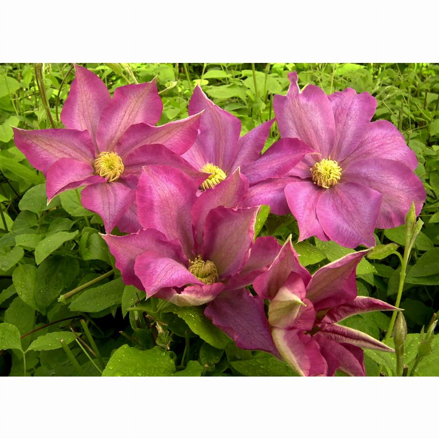 2 группа обрезки, цветет на побегах прошлого и текущего года. Деревянистая лиана 2-2,5м. Период цветения: май-июнь на побегах прошлого года, июль-сентябрь — на побегах текущего года. Цветы темно-розовые или розово-красные с яркими желтыми тычинками в середине, раскрытые, крупные, 13 – 16 см в диаметре, простые, имеют 4-6 чашелистиков обратнояйцевидной формы.
