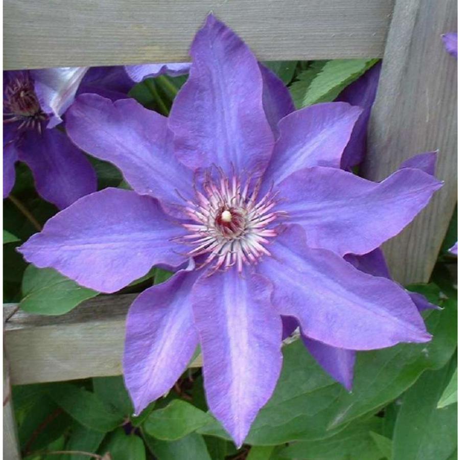 2 группа обрезки, цветет на побегах прошлого и текущего года. Группа Патенс. Кустарниковая лиана длиной 2-2,5 метра. Цветки крупные, раскрытые, диаметром 14-18 см, на длинных цветоносах. Чашелистики густо-пурпурно-фиолетовые, с более светлой полосой по середине. Пыльники темные, красновато-пурпурные. Цветет с июля до заморозков.