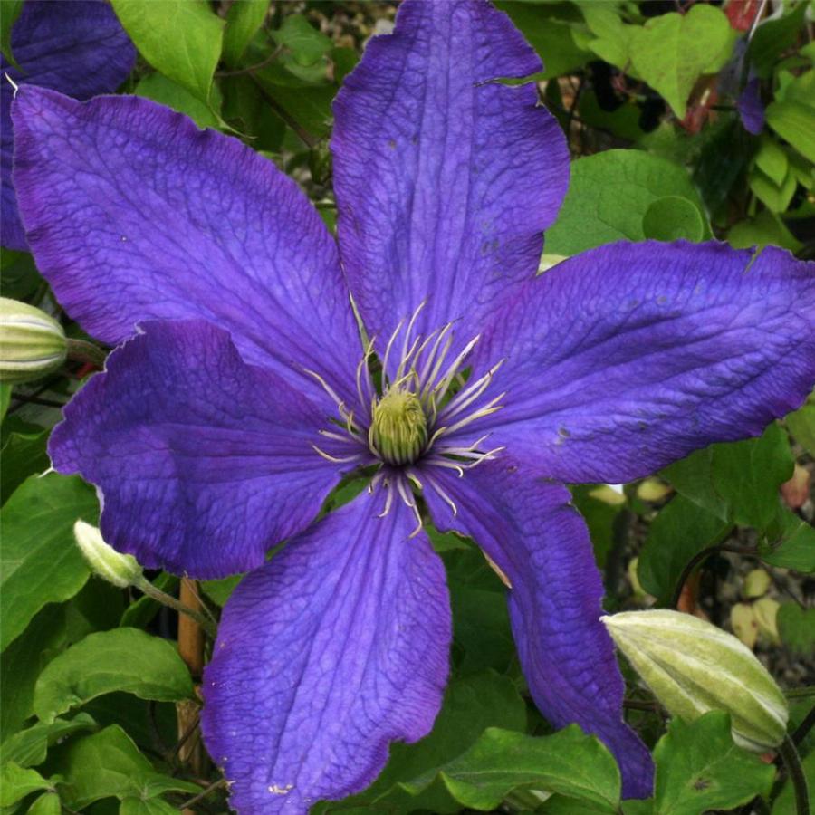 3 группа обрезки, цветет на побегах текущего года. Сапфирово-синие цветки с заостренными чашелистиками и кремово-желтыми тычинками. Диаметр цветков 12-14 см. Период цветения: июнь-сентябрь. Высота растения 2,5 м. Один из лучших синих сортов.