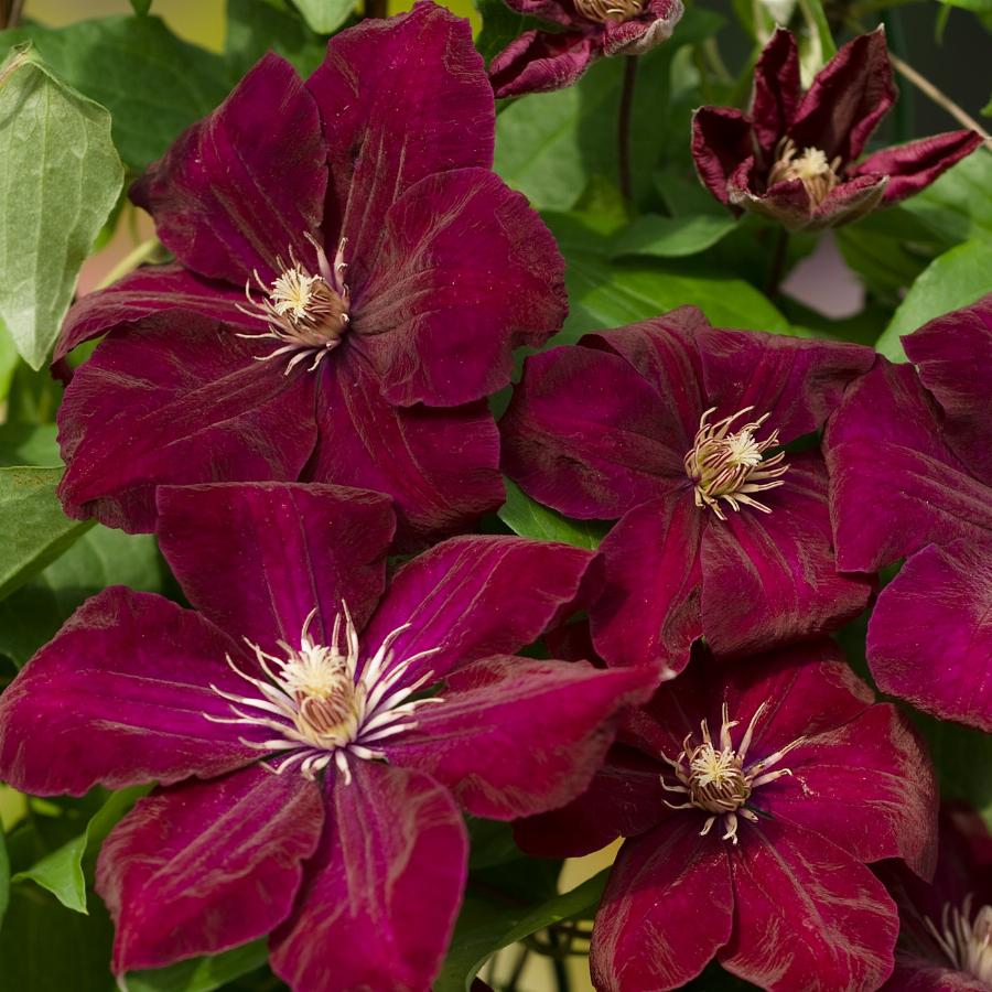 3 группа обрезки, цветет на побегах текущего года. Группа Жакмана. Длина побегов 2.5-3 м. Цветок 10-15 см в диаметре. Чашелистики красно-пурпурные, бархатистые. Средняя полоса немного светлее. Пыльники бледно-пурпурные. Обильно цветет с июля по сентябрь.