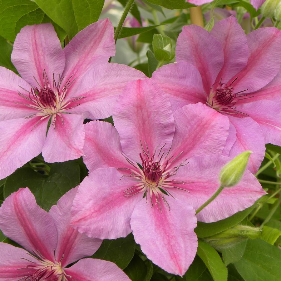 2 группа обрезки, цветет на побегах прошлого и текущего года. Розовый с темными широкими полосками из центра. Лиана высотой до 2 м. Цветение почти непрерывное с небольшим перерывом. Первая волна с конца апреля по июнь. Второе цветение с августа по октябрь. Цветки 12-16 см в диаметре. Отлично подходит для выращивания в горшках.