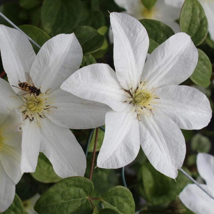 2 группа обрезки, цветет на побегах прошлого и текущего года. Цветки крупные белоснежные с желтыми тычинками. Диаметр цветка 14-16 см., 6-8 чашелистиков, лепестки широкоэллиптические, налегающие друг на друга, с заостренными кончиками. Очень обильно и продолжительно цветет с мая по июнь, повторное цветение c августа по октябрь. Высота растения 2-2,5м.
