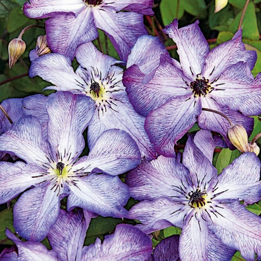3 группа обрезки, цветущие на побегах текущего года. Высота до 3м. Цветки диаметром 5-8 см, белые с тёмно-фиолетовыми прожилками и фиолетовой каймой. Цветёт в конце июня-сентябре на побегах текущего года. Высота 300 см. На зиму в средней полосе требуется обязательное укрытие. Зона 6 (до -18°С).
