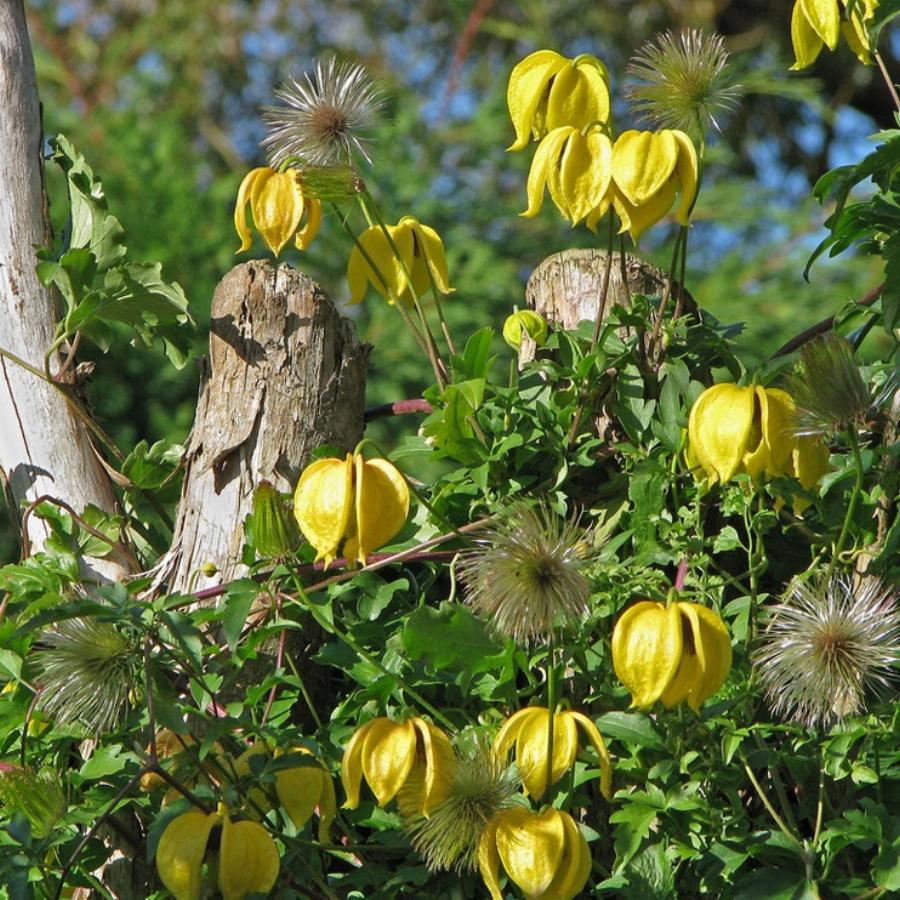 3 группа обрезки, цветет на побегах текущего года. Цветок пониклый, широко колокольчатый, желтый. Пыльники кремовые. Цветение продолжительное, с июля до заморозков. Высота растения около 3 м.