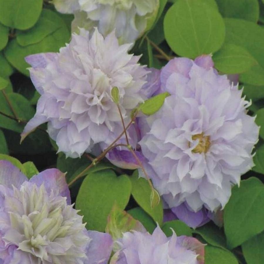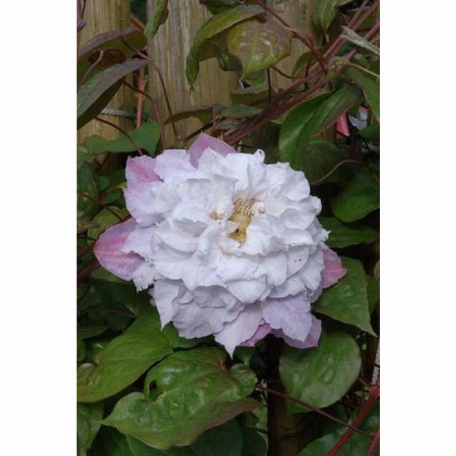 2 группа облезки, цветет на побегах прошлого и текущего года. Густомахровые цветки достигают 15-20 см. Центр цветка из белоснежного, плавно переходит к фиолетовым чашелистикам. Лиана достигает 3 м. Цветение продолжительное и повторное с начала лета до середины сентября, сопровождается нежным ароматом. Обладает хорошей зимостойкостью и редко подвержен болезням.