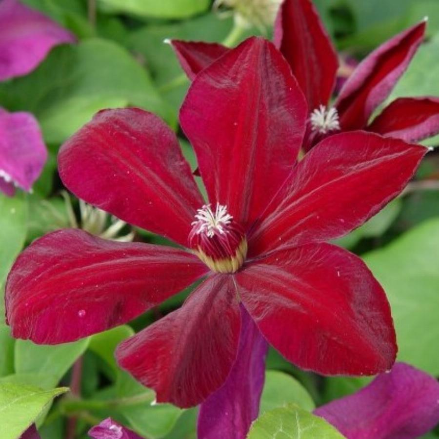 3 группа обрезки, цветет на побегах текущего года. Лиана длиной 1-1,8 метров. Цветки 10-14 см в диаметре. Чашелистики очень яркого бархатисто-красного цвета, середина красно-пурпурная. Продолжительное обильное цветение с июля до заморозков. Идеален для выращивания в контейнерах.
