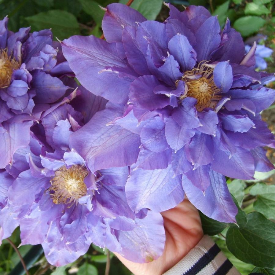 2 группа обрезки, цветет на побегах прошлого и текущего года. Длина побегов 2,5-3 метра. Цветки сиреневой окраски, махровые на перезимовавших побегах. На молодых побегах цветки с 6 лепестками диаметром 15 см. Пыльники светлые. Требует солнечного места и защиты от ветра.