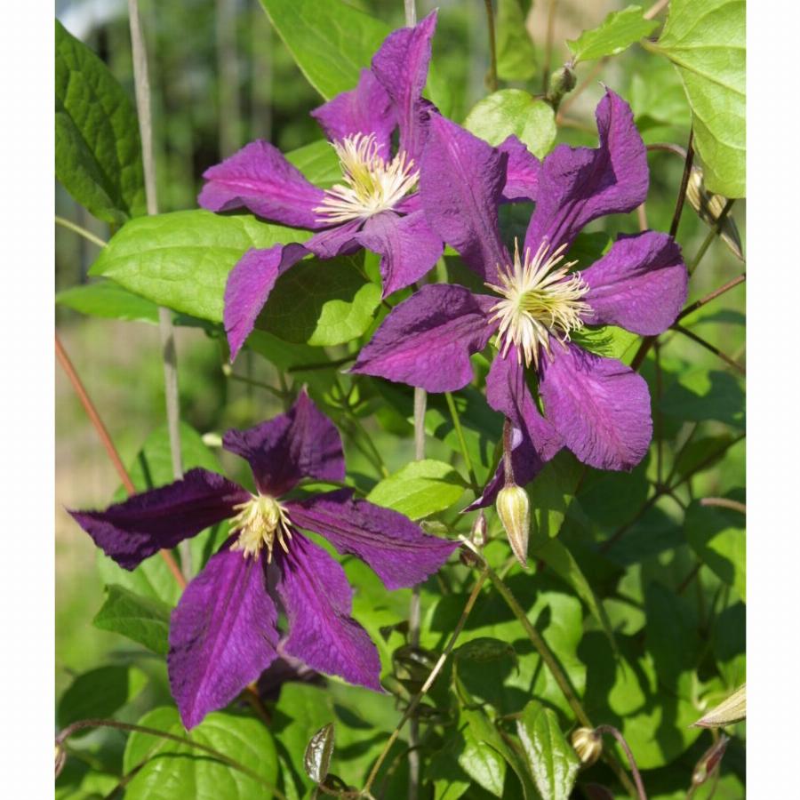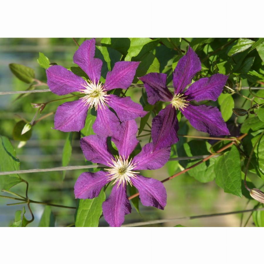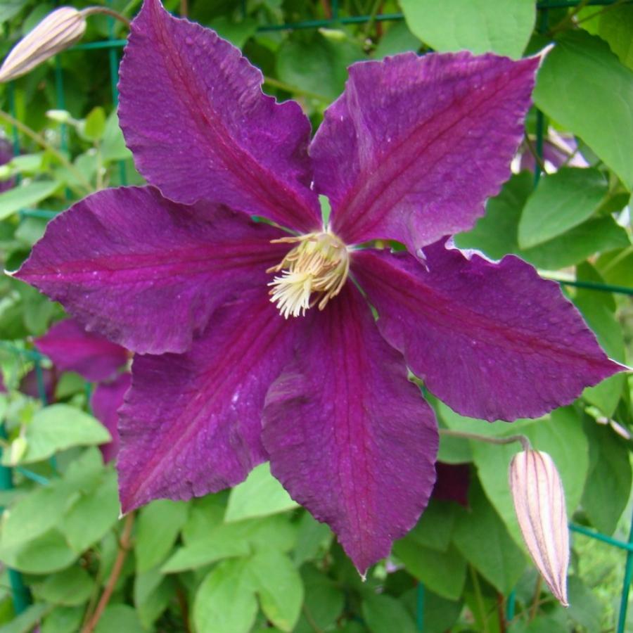 3 группа обрезки, цветет на побегах текущего года. Высота до 3,5 м. Цветы фиолетовые с вишневой полосой посередине, диаметром 10-12 см. Период цветения: июль-сентябрь.