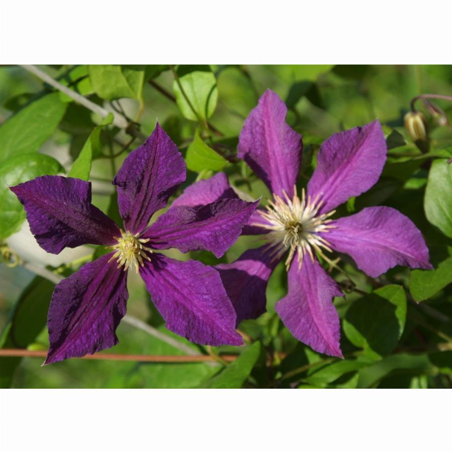 3 группа обрезки, цветет на побегах текущего года. Высота до 3,5 м. Цветы фиолетовые с вишневой полосой посередине, диаметром 10-12 см. Период цветения: июль-сентябрь.