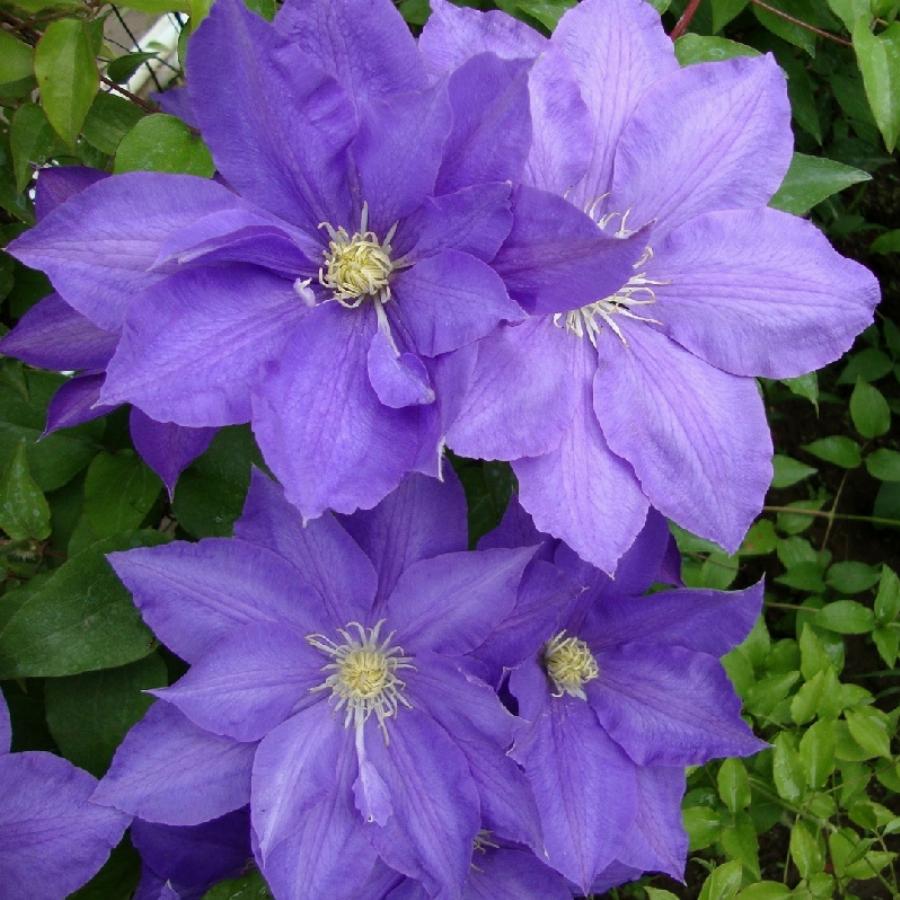 2 группа обрезки, цветет на побегах прошлого и текущего года. Лепестков 6-8, заострённо-продолговатые, остроконечные, фиолетово-синие, жилки фиолетовые. Пыльники бледно-жёлтые. В мае-июне цветки простые или полумахровые, летом простые. Зимостойкий.