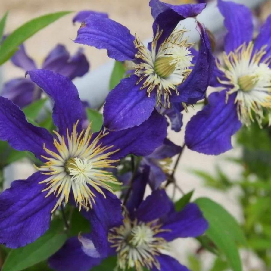 3 группа обрезки, цветет на побегах текущего года. Цветёт в июне-сентябре на побегах текущего года. Высота 150 см. Цветки -устойчиво темно-синие (фиалковые) с 4-6 лепестками, достаточно крупные для этой группы, 6-9 см, появляются в верхней части побегов. Лепестки -рельефные, структурированные, широко-расставленные, кончики оттогнутые назад. Прекрасно подходят к различным многолетникам при создании групп и цветников. Климатическая зона: 5 (от -28,8 до -23,5).