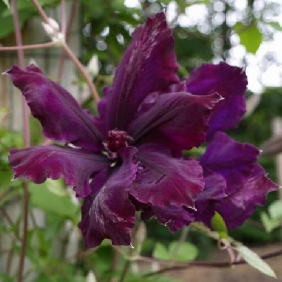 3 группа обрезки, цветет на побегах текущего года. Яркий представитель поздних сортов клематисов. Цветки размером14-16 см, за счет своего большого размера и невероятно насыщенного темного окраса смотрятся очень эффектно, особенно на светлом фоне. На солнце цветки сильно выгорают. Высота растения, около 3 м.