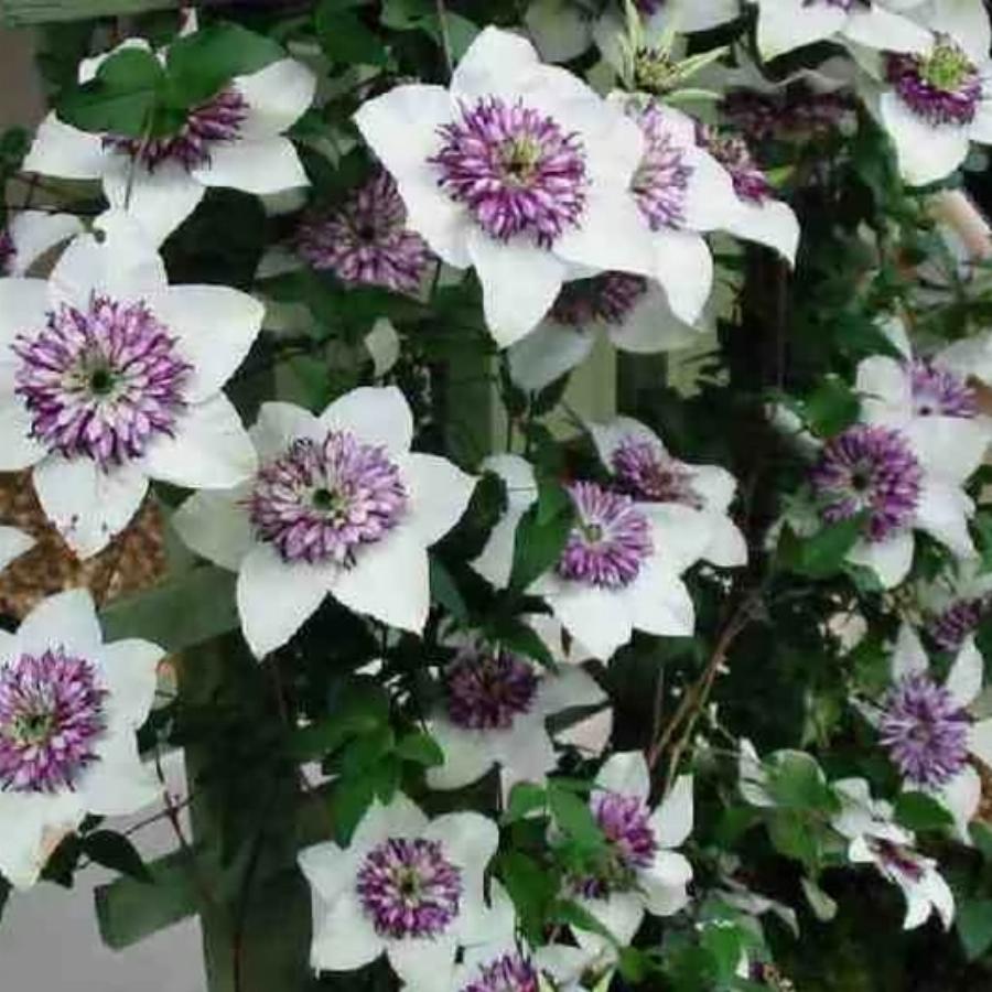 3 группа обрезки, цветет на побегах текущего года. Оригинальные цветки с заостренными ванильно-фисташковыми внешними лепестками и объемная серединка из кружевных темно-пурпурно-фиолетовых тычинок. Высота растения до 3 м. Нуждается в хорошем зимнем укрытии.