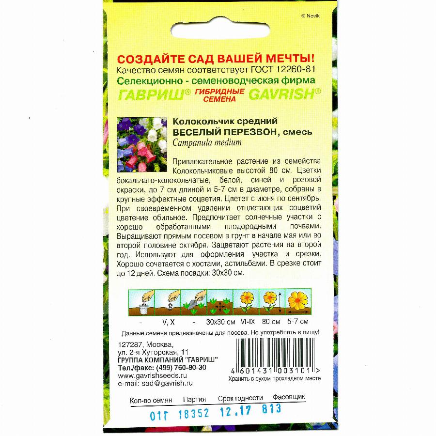 КОЛОКОЛЬЧИК СРЕДНИЙ ВЕСЕЛЫЙ ПЕРЕЗВОН 0,1 Г гавриш Цена: 14.20 р. Производитель: ГАВРИШ Страна производства: Россия