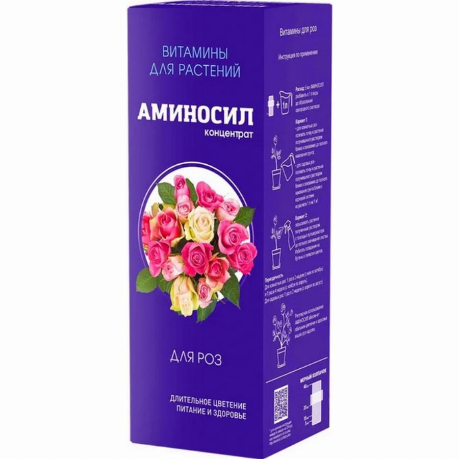 Витамины для роз «Аминосил» созданы для полноценного сбалансированного питания всех типов роз. 100% органический состав. Макро- и микроэлементы. 40+ аминокислот. Удобрение для роз — это специально разработанный комплексный продукт, который предназначен для подкормки комнатных растений и цветов, особенно роз. Оно содержит все необходимые элементы питания, которые необходимы для здоровья и красоты растений. Подкормка для роз обладает уникальной формулой, которая способствует быстрому и здоровому росту растений. Средство содержит все важные макро- и микроэлементы, а также натуральные добавки, которые увеличивают количество питательных веществ, необходимых для роста и цветения. Розы, как известно, очень требовательны к условиям выращивания, и без правильной подкормки они не будут в достаточной мере развиваться и образовывать цветы. Удобрение для роз поможет сохранить зеленость и привлекательность листьев, усилить цветение и увеличить размер цветов. Рекомендуется использовать удобрения в период активного роста растений и цветения. Если вы ищете эффективное и качественное удобрение для роз — это идеальный вариант для вас и ваших цветов. Инструкция: расход: 5 мл разбавить в 1 л воды до образования однородного раствора. Вариант 1: для комнатных роз — поливать почву и растение получившимся раствором ближе к основанию до полного намокания грунта; для садовых роз — поливать почву и растение получившимся раствором ближе к корневой системе из расчета 1 л на 1 м?. Вариант 2: опрыскивать растение полученным раствором с помощью пульверизатора до полного смачивания листвы. Избегать попадания на бутоны и лепестки цветов. Периодичность: для комнатных роз 1 раз в 2 недели (с мая по октябрь) и 1 раз в 4 недели (с ноября по апрель); для садовых роз 1 раз в 2 недели (с апреля по август). Регулярное использование средства «Аминосил» обеспечит обильное цветение и здоровье ваших роз надолго.