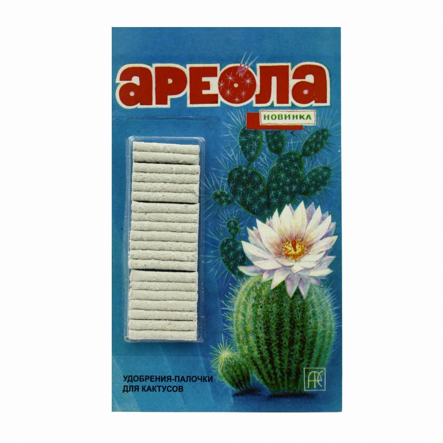 Комплексное удобрение длительного пользования применяется для подкормки всех видов комнатных кактусов. Благодаря особым формам связи питательных веществ гарантируется правильная подкормка растений в течении 3 месяцев для влаголюбивых и 6 месяцев для сухолюбивых кактусов без опасности передозировки. Удобрение «Ареола» в виде палочек расщепляются под воздействием воды: питательные вещества расходуются постепенно, в горшке не остается никакого остатка. Состав: азот-10%, фосфор-5%, калий-20%.