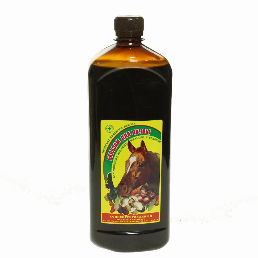 Экстракт конского навоза. Бальзам для почвы препятствует аккумуляции в растениях: Тяжелых металлов, Мышьяка, Радионуклидов, Нитратов из почвы. Бальзам для почв содержит все необходимые для развития растений питательные вещества. Продукт получен методом экстракции навоза на специальном оборудовании по технологии, обеспечивающей его полную очистку от яиц гельминтов, семян сорных растений и патогенной микрофлоры. Обогащенный концентрированный экстракт конского навоза, ценнейшее органическое удобрение для повышения урожайности овощных, ягодных культур, грибниц и восстановления плодородия всех видов почв.
