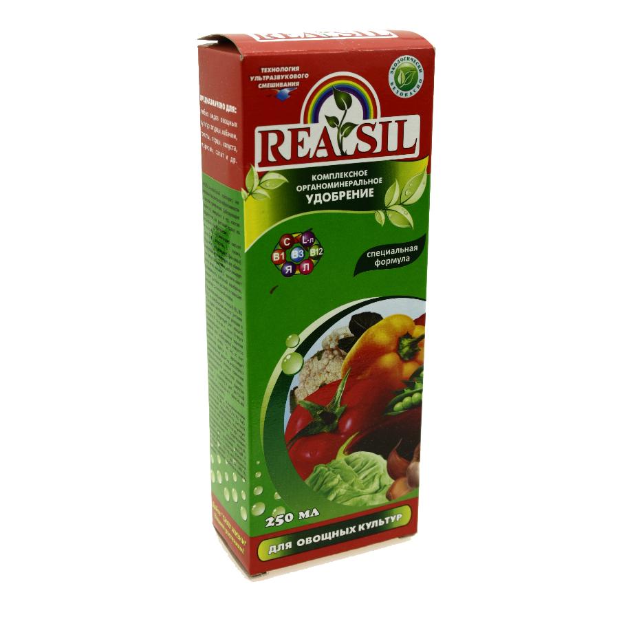 Высокоэффективное комплексное жидкое органоминеральное комплексное удобрение, отличается высокой степенью химической чистоты элементов, устойчивости хелатных соеденений в широком диапозоне pH (от 4 до 11) и к солнечному свету-что является важным фактором в эффективности листовых подкормок. В качестве хелатирующего агента при производстве «REASIL» используется-гидроксиэтилидендифосфоновая кислота (ОЭДФ), которая по своей структуре наиболее близка к природным соединениям на основе полифосфатов и является регулятором роста растений. Предназначено для любых видов овощных культур.