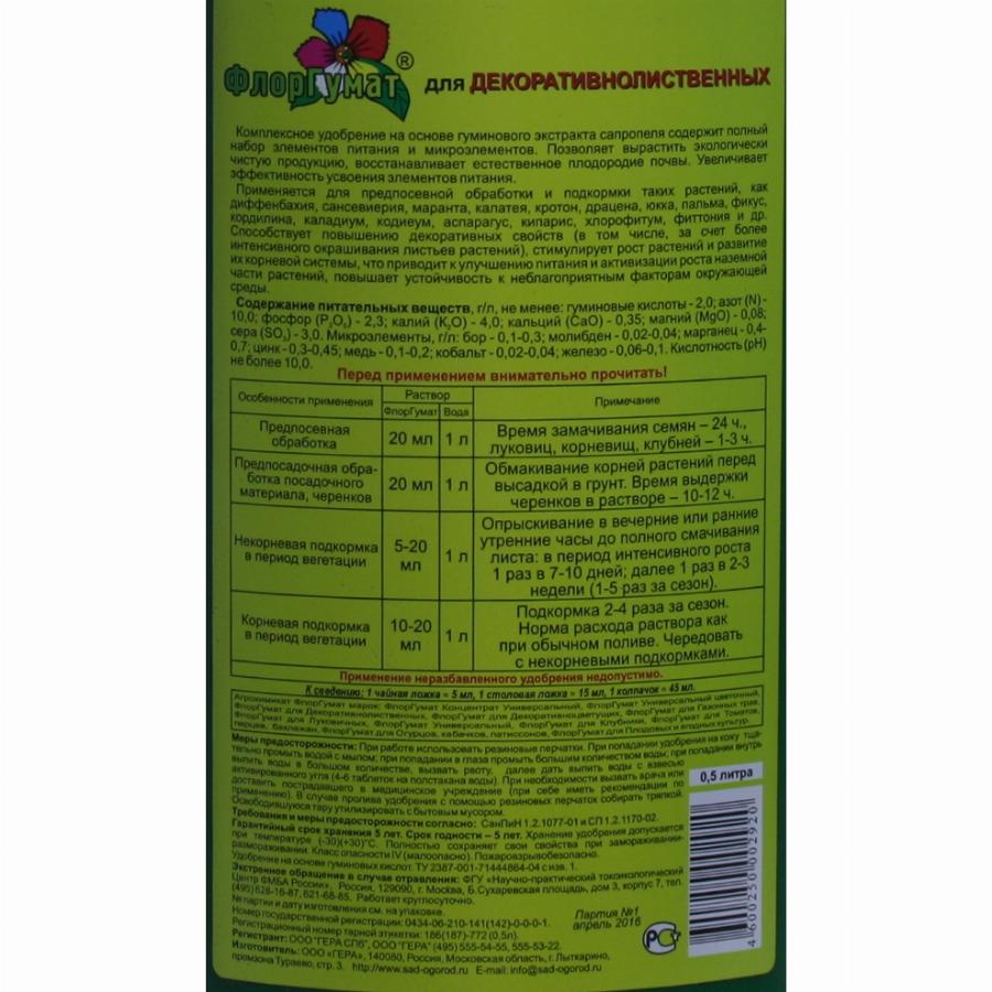 КОМПЛ/УД ФЛОРГУМАТ ДЛЯ ДЕКОРАТИВНО-ЛИСТВЕННХ 500 МЛ гера 07015